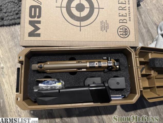Beretta M9A4. Comes with box, paperwork, night sites, extra grip, three 18 round mags and everything it did new plus an aftermarket 22 round mag. $1,100 cash. I have $1250 in it. Basically buying a new one without the tax. I purchased two of them and never fired this one. Just sits in the safe. Can meet near the Moberly or Columbia area. Must legally be able to own. Missouri ID and bill of sale required. Not interested in trades.