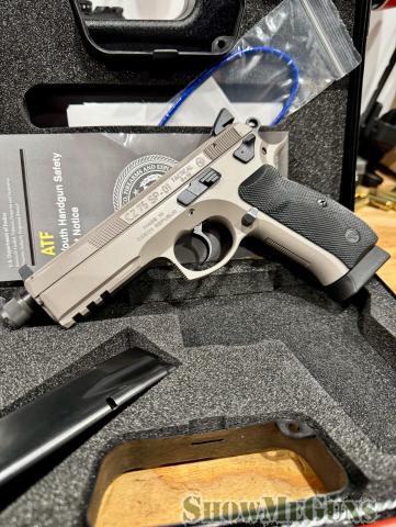 I have a CZ 75 - SP101 Tactical in Urban Gray. The color, sights, threaded barrel are all factory. It comes with original box, paperwork and magazines. Gun is basically brand new, having only been shot a couple of times.