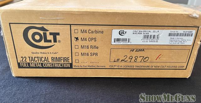 NIB M4 OPS .22lr caliber rifle purchased new and stored in climate controlled environment. All paperwork, lock, has the factory adjustable sights as well. OBO